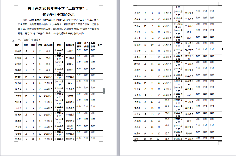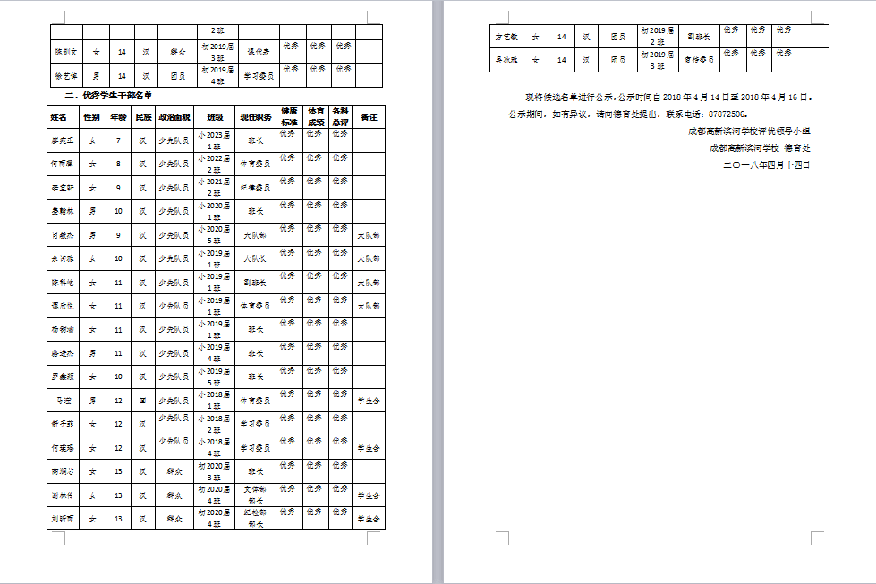 关于评选2018年中小学“三好学生”、 优秀学生干部的公示