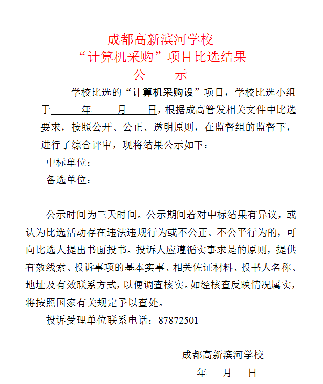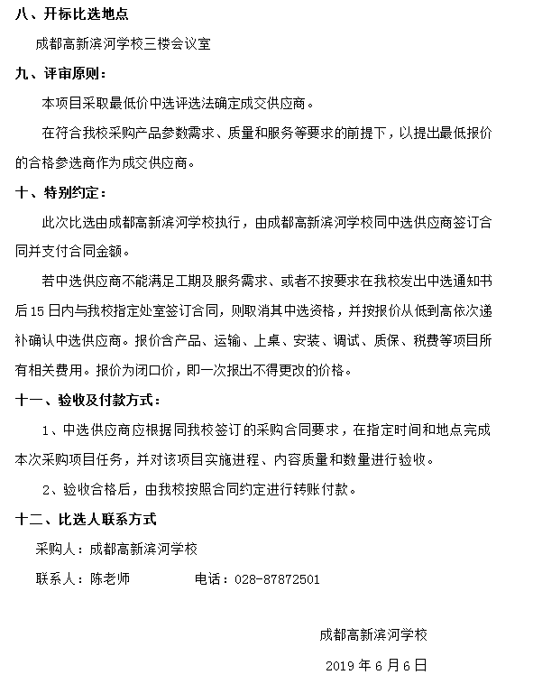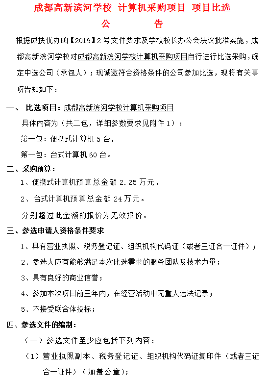 成都高新滨河学校 计算机采购项目 项目比选
