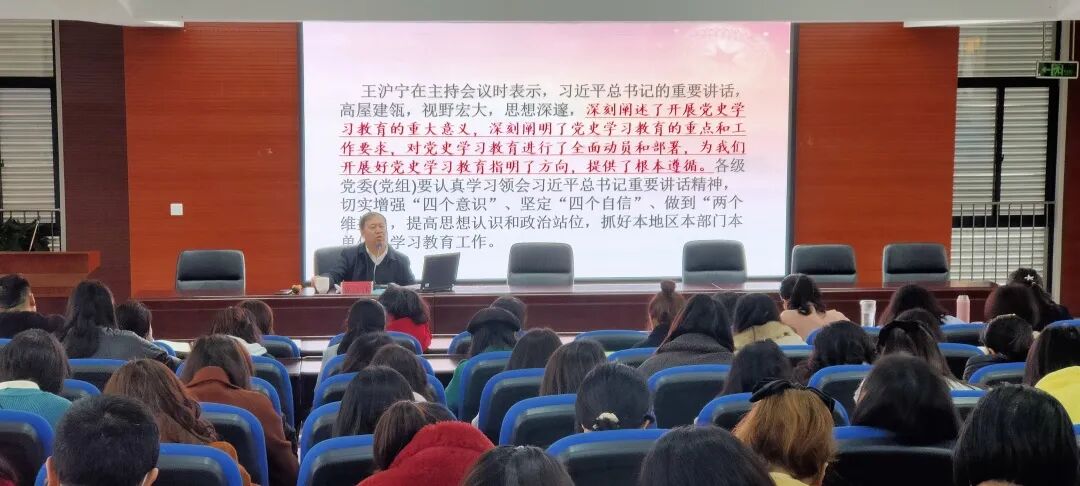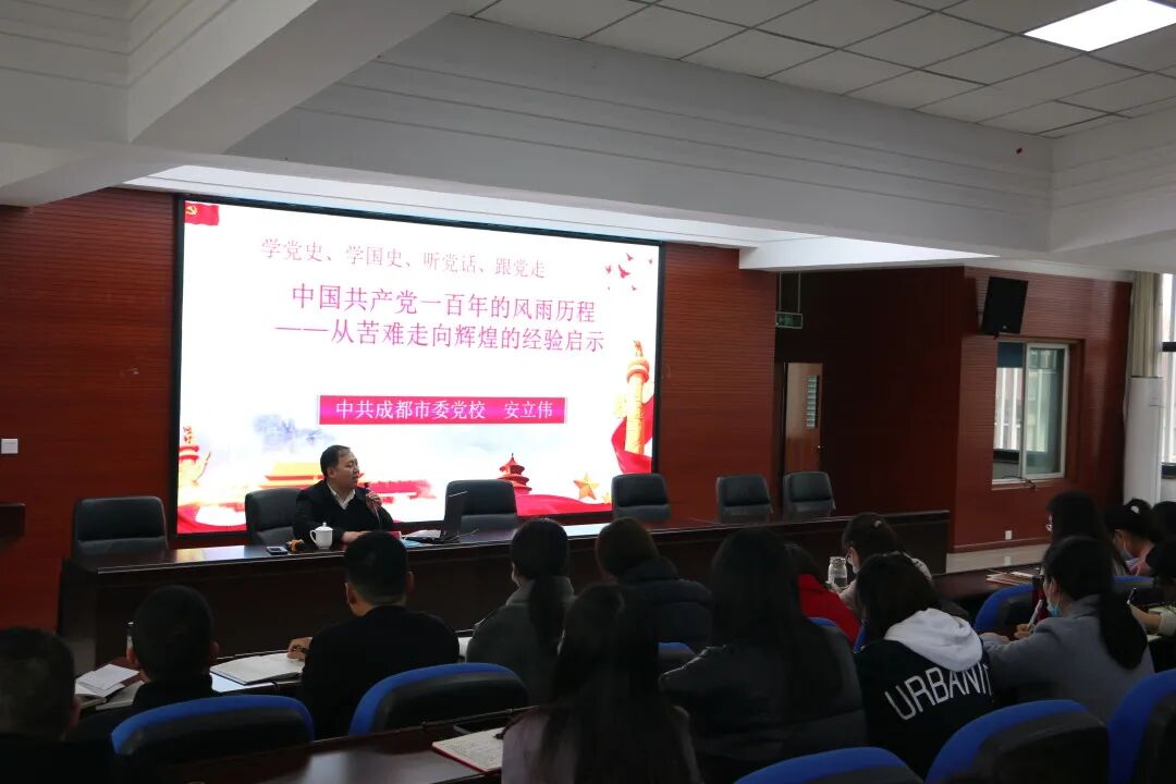 为进一步加强学习,发扬党的革命精神,把握历史的规律,增强工作的预见性和创造性。学校特邀请中共成都市委党校党史党建教研部副教授安立伟对全校教职工进行党史宣传教育。安立伟教授从“为什么学,学什么,怎么学”三个方面开启了他的讲座。
