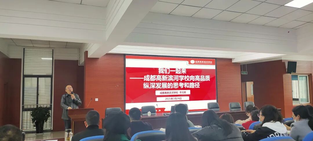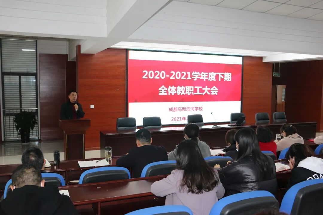 草木蔓发,春山可望,踏着春风,滨河人齐聚学校共谱杏坛故事。2021年2月26日,成都高新滨河学校召开了2020-2021学年度下期开学全校教职工大会,会议由学校办公室主任周红军主持。