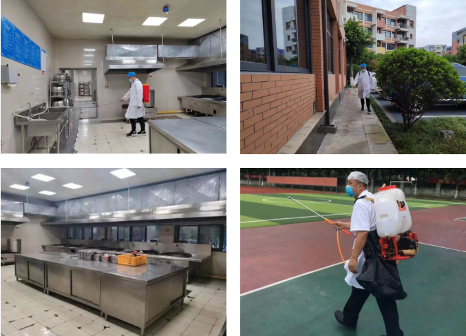 复学前,学校对校园进行全面消杀工作,不放过任何一个死角。学校按照卫生消杀管理的标准规范对校园进行全面消杀工作,对校门口、教室内外、食堂、卫生角、洗手间等公共区域进行专业喷雾式消毒消杀,只为迎接今天归来的全体滨河师生。