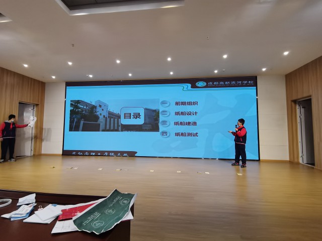 在2022年11月 1 日、2 日组织开展的成都高新区小学科学创新实践活动暨“电动纸船的设计、建造与运物测试”比赛中,由我校科技组的钟祖良老师指导带队,刘云曦、李文博和罗鹏涛三位同学组成的小团队,通过前期的刻苦科学的训练,在决赛中精诚合作,最终在全区35所参赛学校中以优异的成绩名列全区第三名,勇夺一等奖!