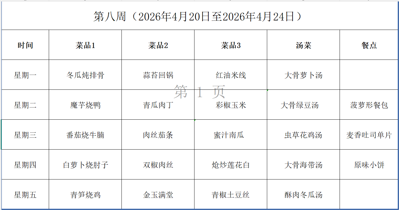 第八周(2026年4月20日至2026年4月24日)