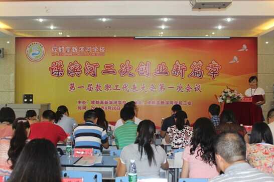 2014年8月20日,成都高新滨河学校召开第一届教职工代表大会第一次会议,25名代表出席了本次会议。大会共收到提案7份,审议通过7个决议,讨论了学校未来五年发展规划。