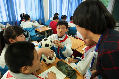 下午,滨河学校就足球课程整合开发的研究成果进行了展示:两节足球训练课,激发孩子们的足球兴趣,让他们享受着运动带来的快乐。以足球为载体的语文、数学、英语、音乐、美术、班会课程,无不展现出对课程整合的锐意探索和着力打磨。教室里座无虚席,听课的老师们都沉浸在学生学习的快乐以及课程整合的思考中。据了解,足球课程的整合也是滨河学校足球活动周的主题内容。在足球与学科的整合上,滨河学校开辟出了一条简单易行的新路径,为校园足球的开展提供了结合德育的新思路。