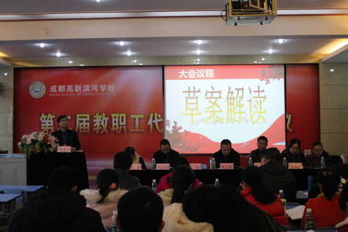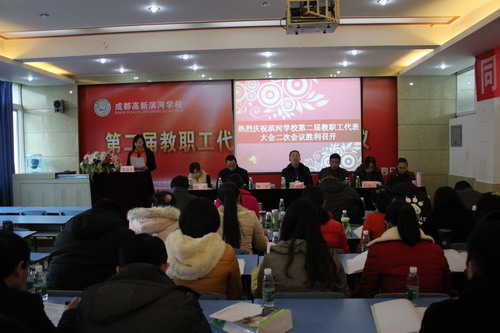2015年12月14日下午,成都高新滨河学校第二届教职工代表大会二次会议在学校多媒体教室隆重举行,由一线教师和干部组成的教代会代表、列席代共37人参加本次大会。会议由学校工会主席徐红同志主持。