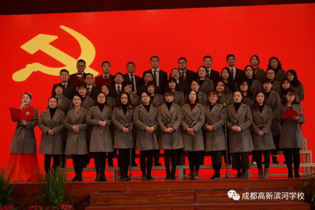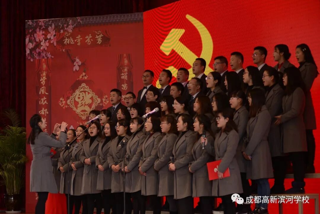 首先出场的是由全体党员带来的精彩合唱节目《我为滨河唱赞歌》,“五星红旗迎风飘扬,胜利歌声多么响亮”、“在滨河,多欢畅。。。我们携手同谱美好篇章”,悦耳的乐曲,磅礴的气势,将全场观众带入了一场震撼的视听盛宴。